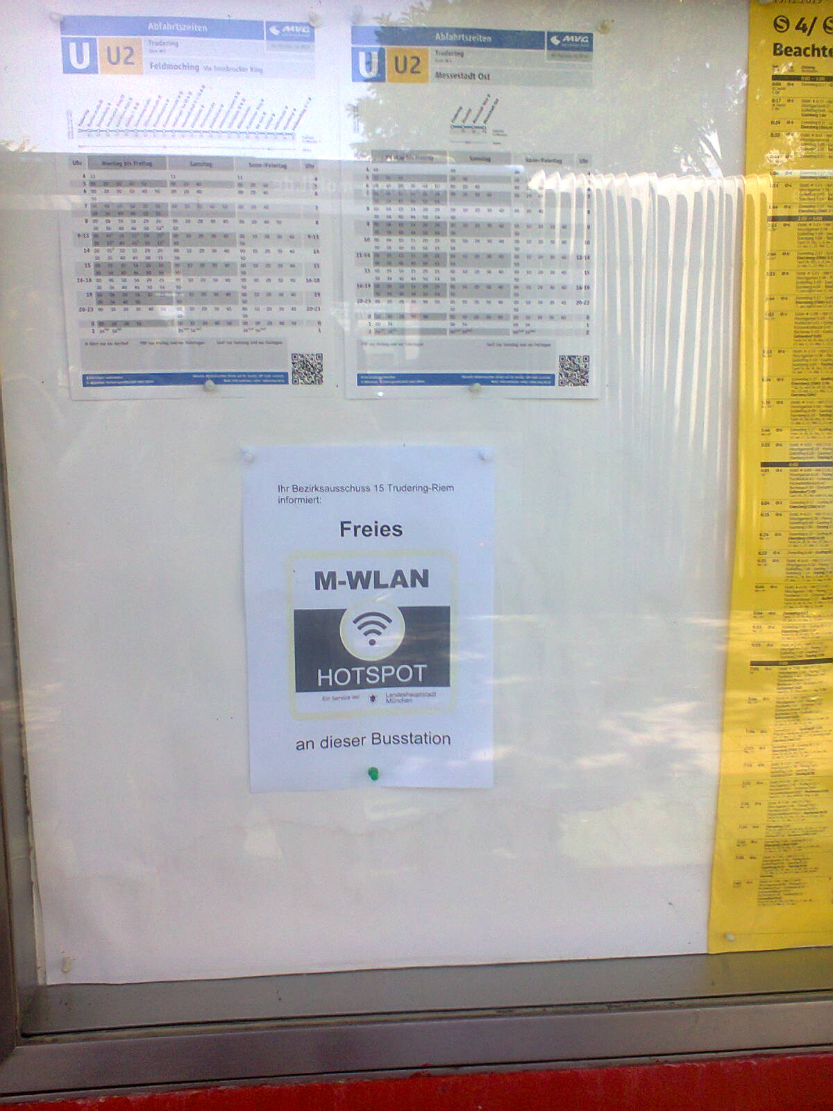 Seit Mitte 2020 gibt es nun auch in Trudering einen öffentlichen M-WLAN-Hotspot, nachdem schon 2015 auf dem Willy-Brandt-Platz in der Messestadt auf Geheiß von OB Reiter der erste Hotspot eingerichtet worden war.